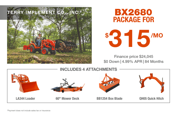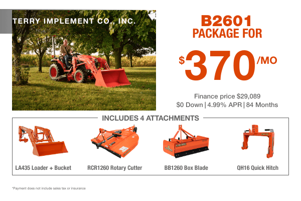 If you're looking for quality equipment and exceptional services provided by trained experts, you've come to the right place. At Terry Implement Co., Inc., we pride ourselves on matching each customer's unique needs with the Kubota that will serve them best. We're glad you're here, where you can check out our inventory, order parts, schedule a service appointment, or simply give us a call at 660-663-2183 for our Gallatin location and let us know how we can help you.